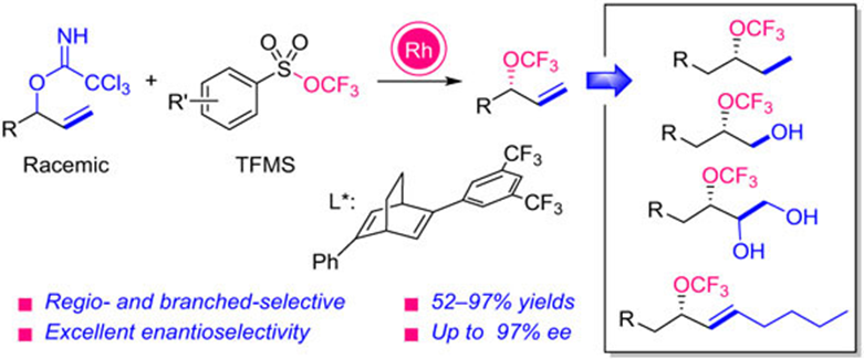 43. Liyan Wang, Yafeng Si, Yuxin Luan*, Pingping Tang*. Rhodium-Catalyzed Asymmetric Trifluoromethoxylation of Racemic Allylic Trichloroacetimidates. CCS Chem. 2024. DOI: 10.31635/ccschem.024.202404011.