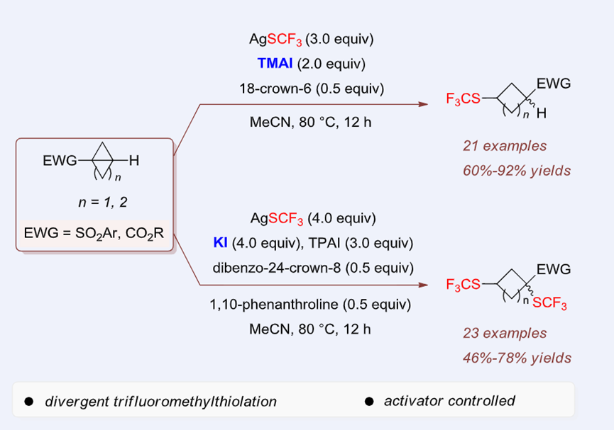 52.Pengfei Yang, Sihan Chen, Yu-Xin Luan* and Pingping Tang*, Divergent Mono- and Di-trifluoromethylthiolation of Bicyclo[1.1.0]butane and Bicyclo[2.1.0]pentane. Chin. J. Chem. 2025, 43, 2917—2921. DOI: 10.1002/cjoc.70194