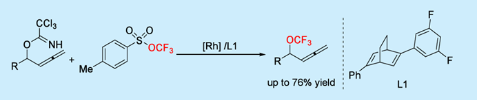 44.Yangdong Hou*, Yicheng Luo, Pingping Tang*.Rhodium-Catalyzed Trifluoromethoxylation of Allenylic Trichloroacetimidates. Org. Lett. 2024, 26, 9764−9768.DOI: 10.1021/acs.orglett.4c03676