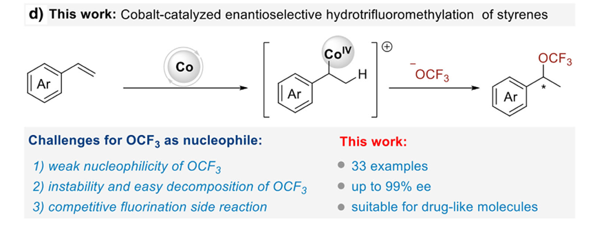 48.Yafeng Si, Yuntao Liu, Fan Zhou, Lei Fang, Kang Wu, Yu-Xin Luan,* Li Chen,and Pingping Tang*,Cobalt-Catalyzed Enantioselective Hydrotrifluoromethoxylation of Aromatic Alkenes, Angew. Chem. Int. Ed. 2025, 64, e202501680, DOI: 10.1002/anie.202501680